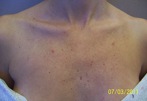 “I have always hated the freckles and age spots on my chest.  I am 42 but feel it makes me look much older.  I came to Nouveau and was told I could have them removed with IPL.  There was absolutely no downtime and  I LOVE my results!!  I feel my clear chest makes me look so much younger.  Thank you!!!”  Debbie C.